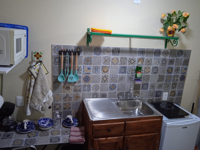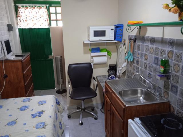 Es un apartamento independiente y se encuentra en Planta Baja con acceso directo desde la calle. Cuenta con una recámara con dos camas individuales, Roku TV, cocineta y baño completo. La cocineta cuenta con horno de microondas, refrigerador, cafetera, estufa, loza suficiente y ollas. El costo de la renta incluye el Internet WiFi. Tiene agua caliente con calentador solar. También tiene una lavadorcita de ropa. Está ubicado cerca del ITESO (Camión directo), Plaza las Fuentes, Bugambilias y Estación Periférico Sur del Tren Ligero. Sólo pequeñas mascotas aceptadas. Precio por mes